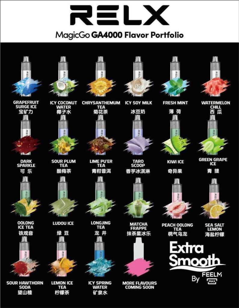 集創新科技、高端設計與多元口味於一身,Relx MagicGo GA4000 4000 口一次性電子煙,無論是追求極致口感的資深玩家,還是講究品味的時尚人士,都能找到屬於自己的完美體驗。立即選購,享受每一口的純淨、順滑與暢快!