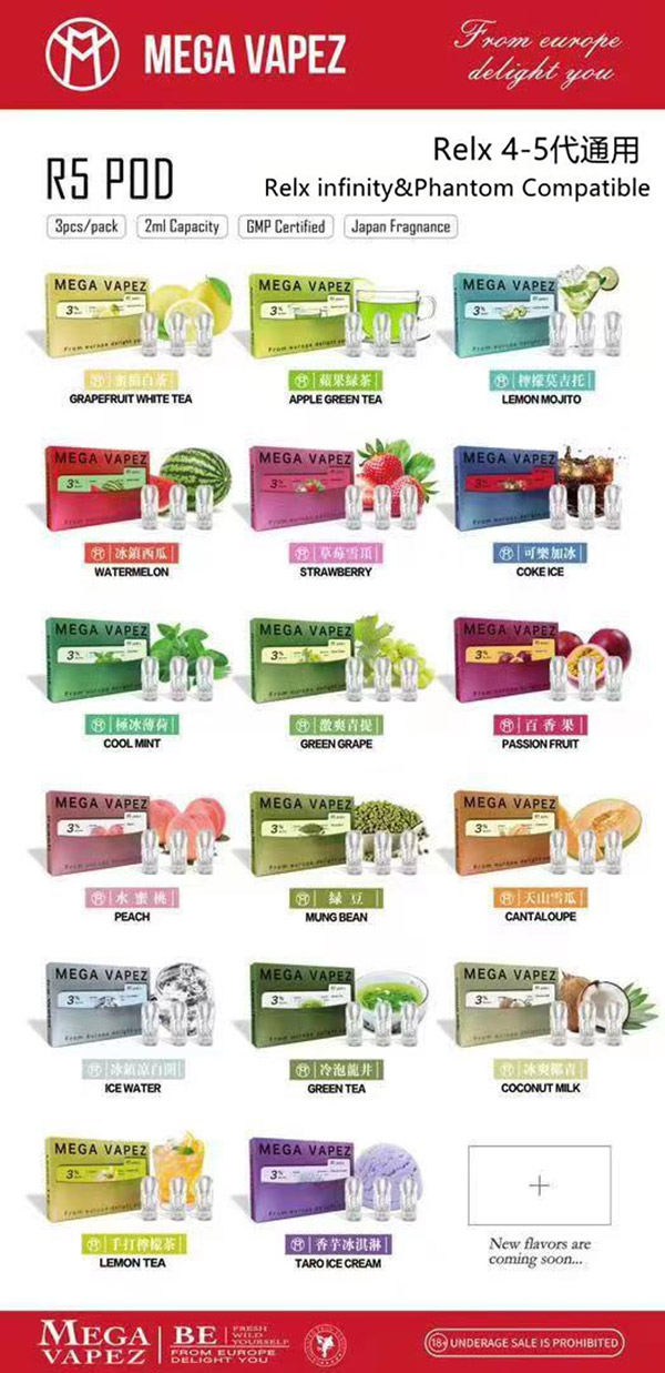 Mega VapeZ 5代煙彈(relx 4/5代通用款)冰涼口感 (煙彈x3)