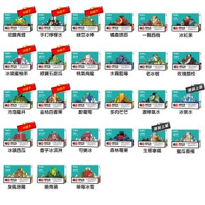 | 口味 | 蘋果-葡萄冰, 桃-草莓-西爪冰, 桃-藍-覆盆子冰, 草莓-覆盆子-櫻桃-冰, 桃子-菠蘿-冰, 西瓜-獼猴桃-冰 |